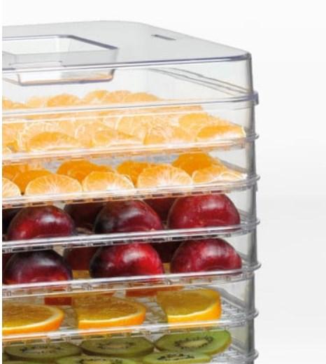 Найбільшою перевагою є рівномірне сушіння завдяки вбудованому вентилятору. Він гарантує, що ваші продукти будуть сушитися однаково на всіх рівнях сушарки.